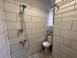 This apartment features one bedroom with a sofa bed, providing flexible sleeping arrangements. The fully equipped kitchen supports independent meal preparation, while the flat-screen TV ensures entertainment. The bathroom includes essential facilities, alongside conveniences like a washing machine and clothes drying rack. Air conditioning maintains a regulated indoor climate throughout.