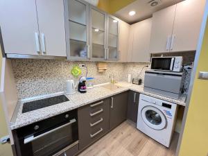 Die Unterkunft verfügt über zwei Schlafzimmer und ein Badezimmer mit Dusche. Die offene Küche ist modern ausgestattet und bietet unter anderem eine Spülmaschine, einen Backofen sowie eine Mikrowelle. Kühlschrank und Kaffeemaschine gehören ebenfalls zur Ausstattung. Im Wohnzimmer finden Sie ein Schlafsofa sowie einen Flachbildfernseher mit Zugang zu Streamingdiensten wie Netflix vor. Für zusätzlichen Komfort sorgen Waschmaschine und Wäschetrockner.
