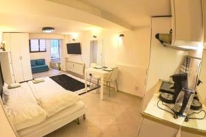 В состав жилья входит гостиная с телевизором с плоским экраном и отдельная кухня, оснащённая холодильником, варочной панелью и электрическим чайником. Спальня укомплектована подушками без пера и имеет место для хранения одежды. В ванной комнате предусмотрена душевая кабина, предоставляются фен, шампунь, мыло и полотенца.
