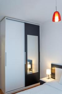 Das Apartment verfügt über ein Schlafzimmer sowie ein Wohnzimmer mit Kabelfernsehen. Die voll ausgestattete Küche beinhaltet Geschirrspüler, Kühlschrank, Weingläser, Wasserkocher sowie das erforderliche Küchenzubehör. Das Badezimmer ist ausgestattet mit Shampoo, Seife und einer begehbaren Dusche, Haartrockner und Handtücher können gegen Aufpreis bereitgestellt werden. Es stehen Feder- oder Nicht-Federkissen sowie hypoallergene Kissenoptionen zur Auswahl.