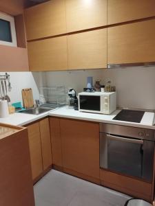 Este alojamiento cuenta con una habitación doble climatizada y calefacción para mayor confort. La sala dispone de televisión pantalla plana y está conectada con una cocina equipada con horno, microondas y placa eléctrica. El baño incluye secador para el cabello junto con champú.