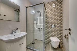 El alojamiento cuenta con un salón luminoso que se abre a un balcón privado, ideal para relajarse al aire libre. La cocina está completamente equipada con microondas, cafetera, lavavajillas y horno, perfecta para preparar cualquier comida. Los baños disponen de duchas tipo walk-in que aportan comodidad y estilo moderno.
